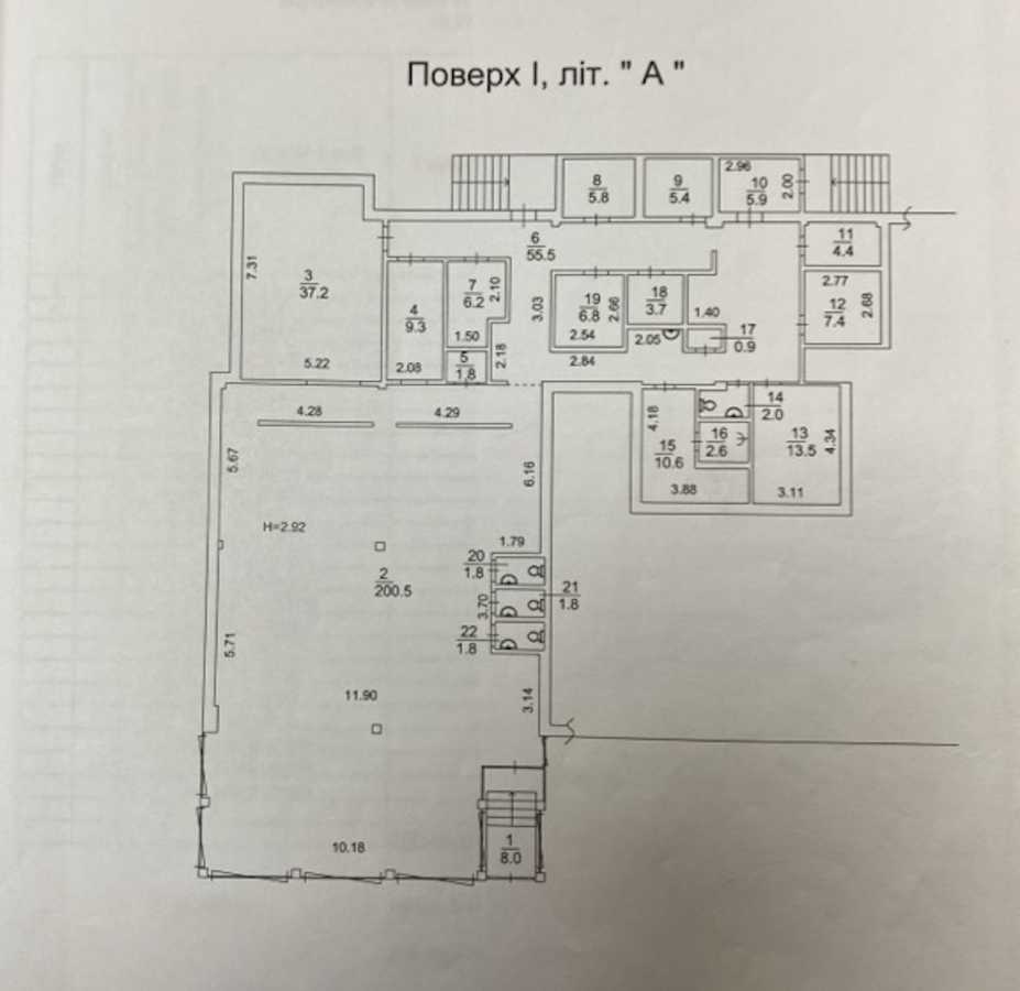Висота приміщення 2,92 м.