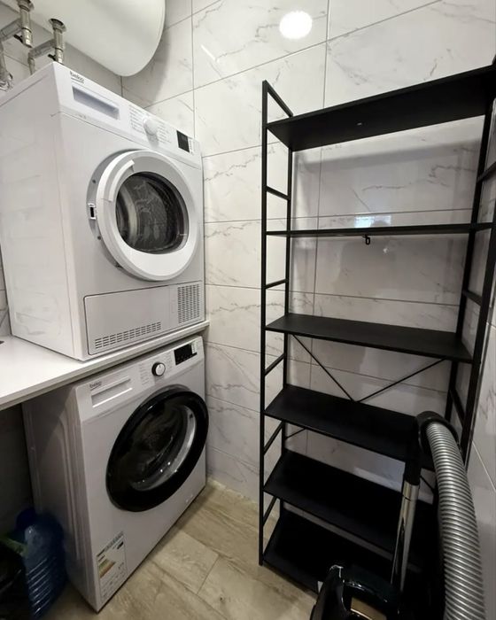 - пральна та сушильна машини, вбудований холодильник, посудомийка, 2 телевізора, пилосос, духовка, мікрохвильовка - тепла підлога,