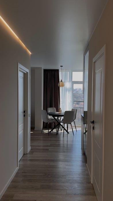 Квартира з якісним сучасним ремонтом, продуманим плануванням та великою кількістю природного світла.